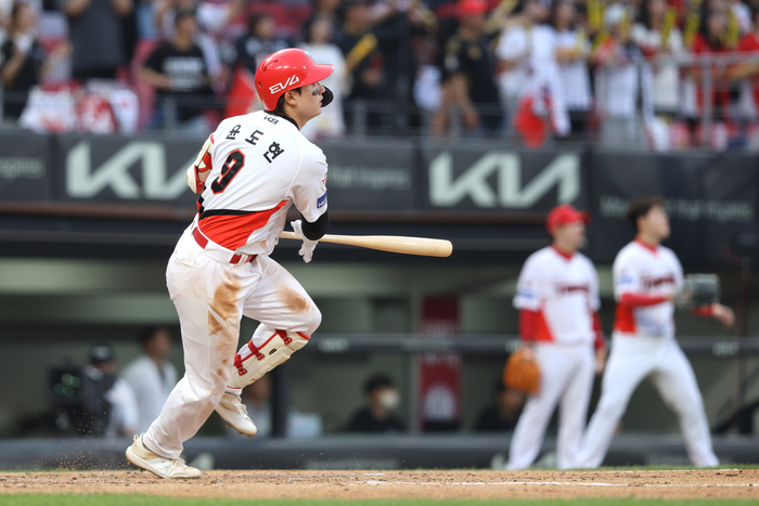 상황은 지난 7일 창원 NC전에서 발생했다. 0-2로 뒤진 9회초 1사 주자 없는 상황. 타석에 윤도현이 섰다. NC 투수는 류진욱이다. 윤도현은 파울 2개 포함해 7구 승부를 펼쳤다. 카운트 2-2에서 7구째 시속 148㎞ 속구가 몸쪽 높이 들어왔다.