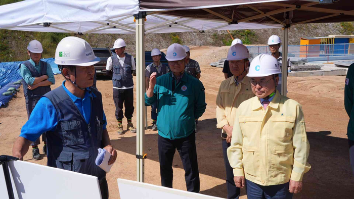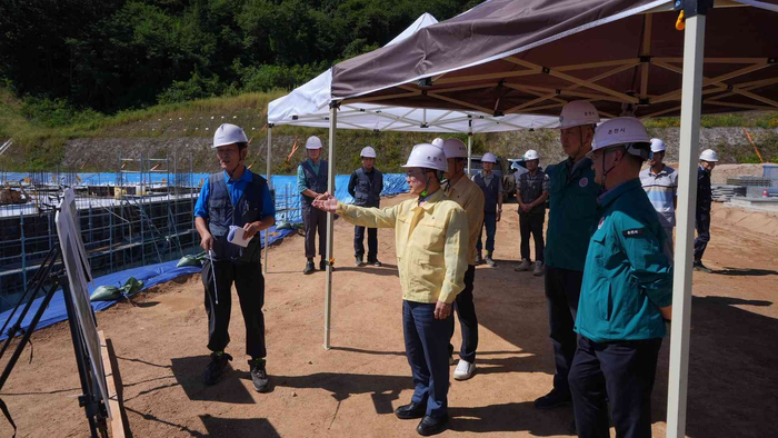 [스포츠서울ㅣ춘천=김기원기자]육동한 춘천시장이 10일 신북읍 지내리 일원에서 진행 중인 ‘용산정수장 현대화사업’ 현장을 방문해 공정 추진 상황을 점검하고 관계자들을 격려했다.