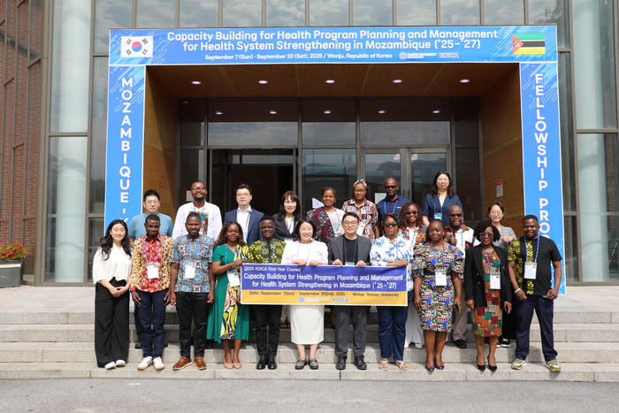 2025년도 코이카 글로벌 연수사업 ‘모잠비크 보건 프로그램 기획 및 관리 역량강화(2025~2027)’의 시작을 알리는 입교식이 9월 8일 오전 9시부터 연세대학교 미래캠퍼스 컨버전스홀에서 열렸다. 이번 연수사업은 코이카가 주관하고 연세대학교 미래캠퍼스가 연수기관으로 협력해 운영된다. 9월 8일 월요일 연수 첫째날은 연세대학교 보건행정학부 노진원 교수(사업책임자)와 손창우 교수(사업실무자), 그리고 모잠비크 보건부 관계자 14명 등이 참석했다.