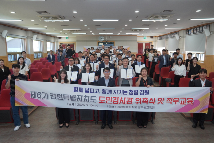 감사위원회는 9월 10일(수) 강원특별자치도공무원교육원에서 「제6기 도민감사관 위촉식」을 개최하고, 앞으로 3년간 도민의 입장에서 행정을 살필 도민감사관 50명과 함께 본격적인 활동을 시작했다.