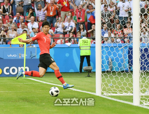 손흥민은 토트넘 유니폼을 입고 잉글랜드 프리미어리그(EPL)에서 활약하던 2018년 러시아에서 신태용 감독 지도 아래 두 번째 월드컵 본선을 치렀다. 1승2패, 조 3위로 다시 탈락을 봤다. 그러나 손흥민은 멕시코와 2차전(1-2 패)에서 놀라운 왼발 감아 차기 슛으로 득점했을 뿐 아니라 독일과 3차전(2-0 승)에서는 후반 막판 김영권의 선제 결승골의 기점이 되는 코너킥과 추가 시간 상대 수문장 마누엘 노이어가 골문을 비운 틈을 타 폭발적인 질주로 왼발 쐐기포를 터뜨렸다. 역사적인 독일전 승리의 히어로였다.