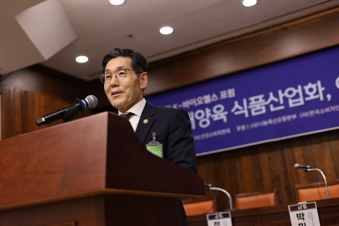 조경태 의원과 함께 포럼을 주최한 건강소비자연대 강영수 대표는 제12차 K-바이오헬스 포럼의 환영사에서 세포배양육에 대한 신중한 접근의 필요성을 강조하며 의미 있는 메시지를 전달했다.