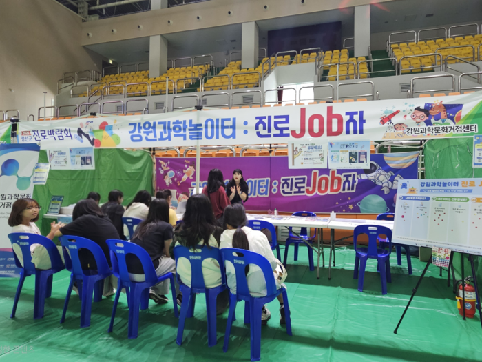 [스포츠서울ㅣ춘천=김기원기자]강원연구원(원장 현진권) 부설 강원과학문화거점센터(센터장 정대현)는 9월 11일(목) 정선종합경기장 체육관에서 열린『제8회 정선군 진로 박람회 ‘맛있는 꿈 디자인’』 에 참여해 청소년들에게 맞춤형 과학 진로 탐색 프로그램을 제공했다.