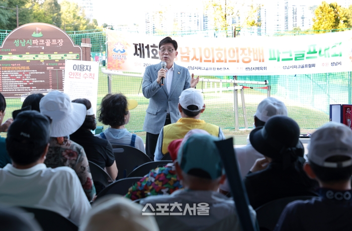 〔스포츠서울│성남=좌승훈기자〕성남시의회 안광림 부의장을 비롯한 의원들은 11일 수내동 파크골프장에서 열린 ‘제1회 의장배 파크골프대회’ 현장을 찾아 선수들과 관계자들을 격려했다.
