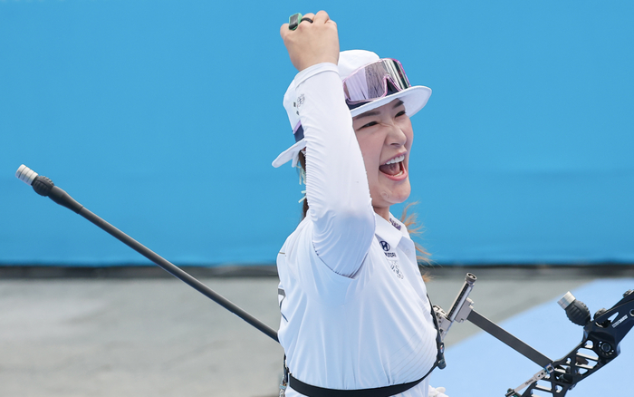 파리 올림픽 3관왕에 빛나는 임시현(한국체대)은 8강전에서 코이루니사에게 4-6(27-28 30-25 27-28 28-26 28-29)으로 졌다.