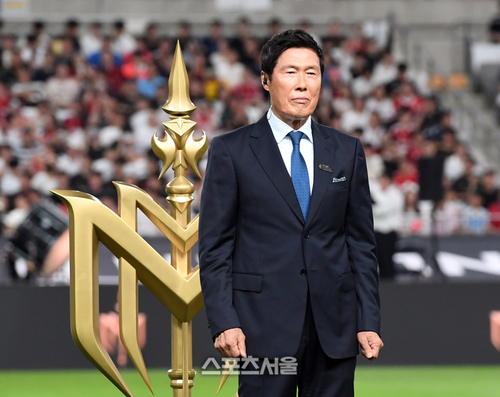 한국 축구 레전드 차범근 전 감독이 14일 서울월드컵경기장에서 열린 ‘2025 아이콘매치’ FC 스피어와 쉴드 유나이티드의 경기에 앞서 식전 행사를 하고 있다. 2025. 9. 14.