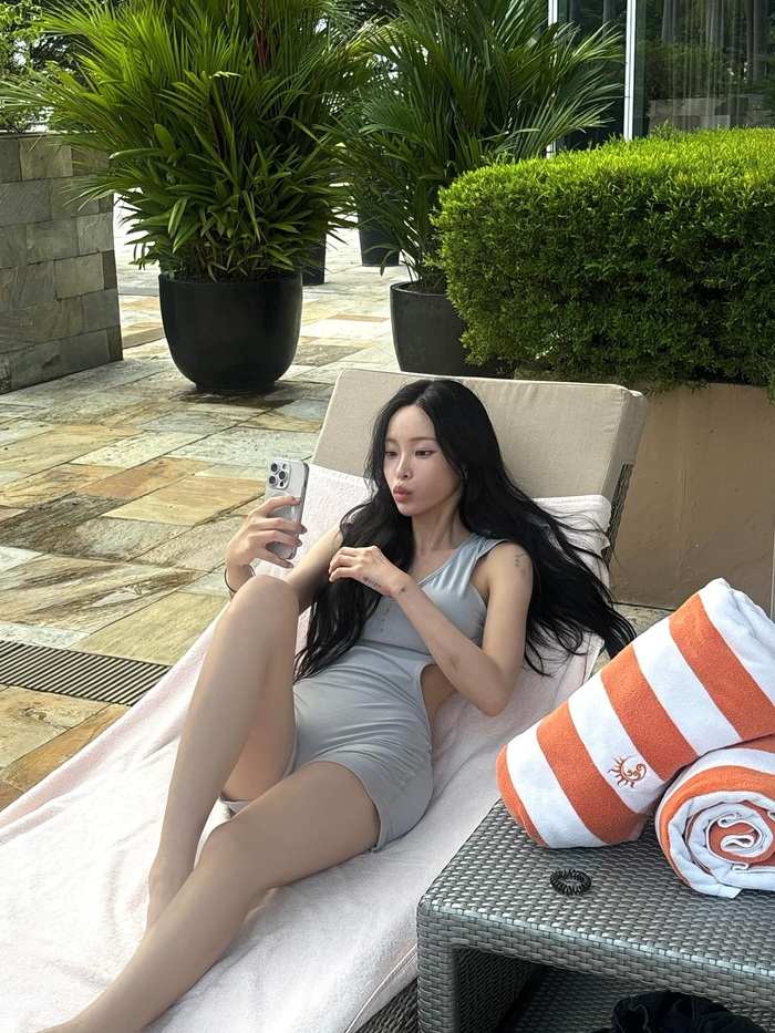 사진 속 헤이즈는 필리핀의 한 리조트에서 여유를 만끽하는 모습으로, 특히 등이 깊게 파인 백리스(Backless) 디자인의 수영복을 착용해 강렬한 인상을 남겼다.