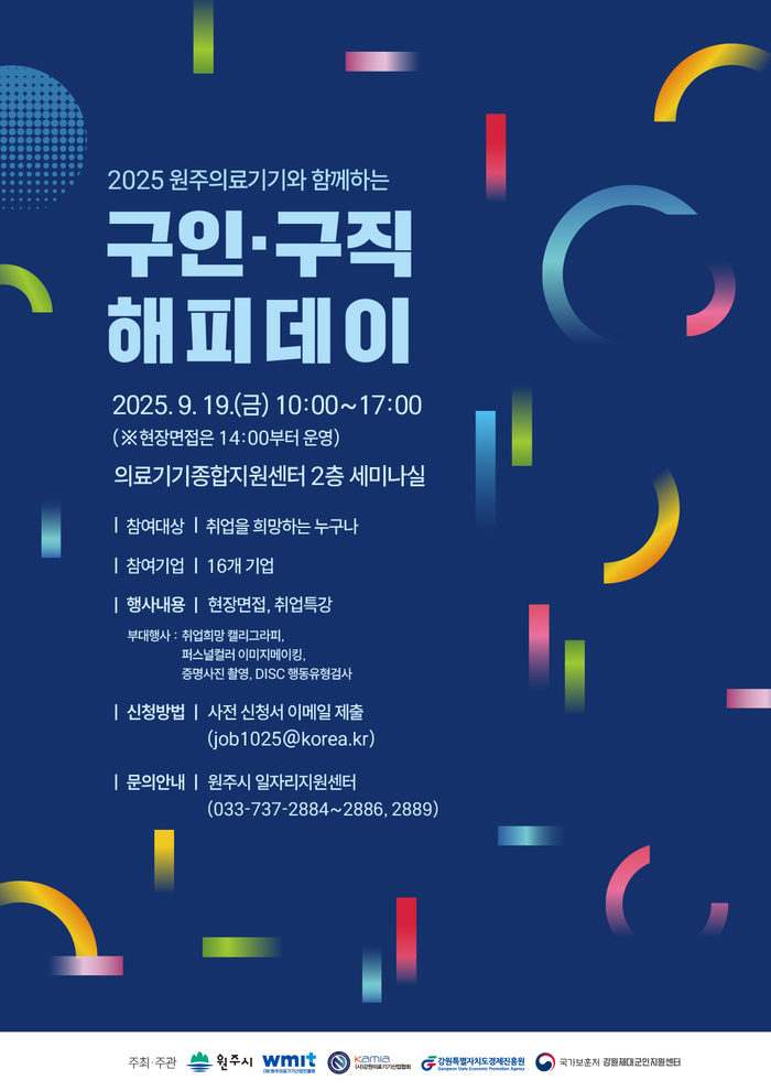 [스포츠서울ㅣ원주=김기원기자]원주시는 오는 19일 오전 10시부터 오후 5시까지 원주 의료기기종합지원센터에서 ‘2025 원주의료기기와 함께하는 구인·구직 해피데이’를 개최한다.