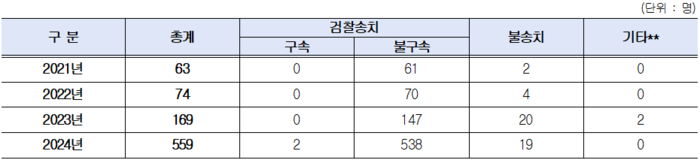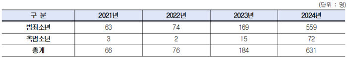 더불어민주당 민형배 의원(문화체육관광위원회)이 경찰청에서 제출받은 자료에 따르면, 촉법소년(10~13세) 도박 범죄 검거 인원은 2021년 3명에서 2024년 72명으로, 3년 만에 24배 폭증했다. 같은 기간 범죄소년(14~18세) 역시 63명에서 559명으로 약 9배 늘었으며, 지난해에는 검찰에 송치돼 구속되는 사건까지 발생했다.