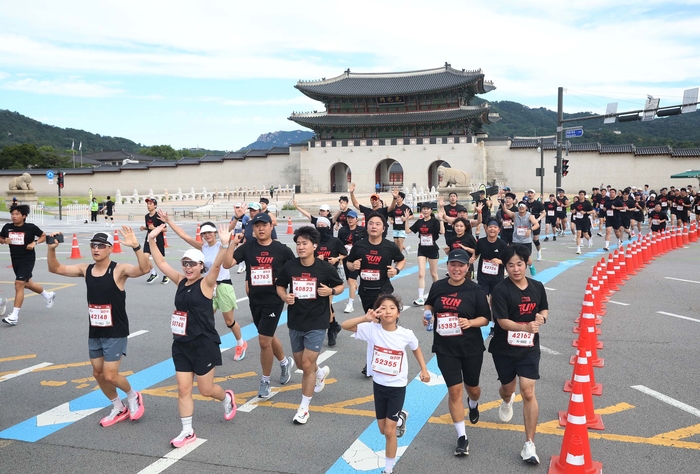 [스포츠서울 | 이주상 기자] 지난 14일 오전 서울광장에서 열린 ‘마블런 서울 2025’ 행사 참가자들이 서울 도심인 광화문을 지나 반환점을 향해 힘차게 달리고 있다.