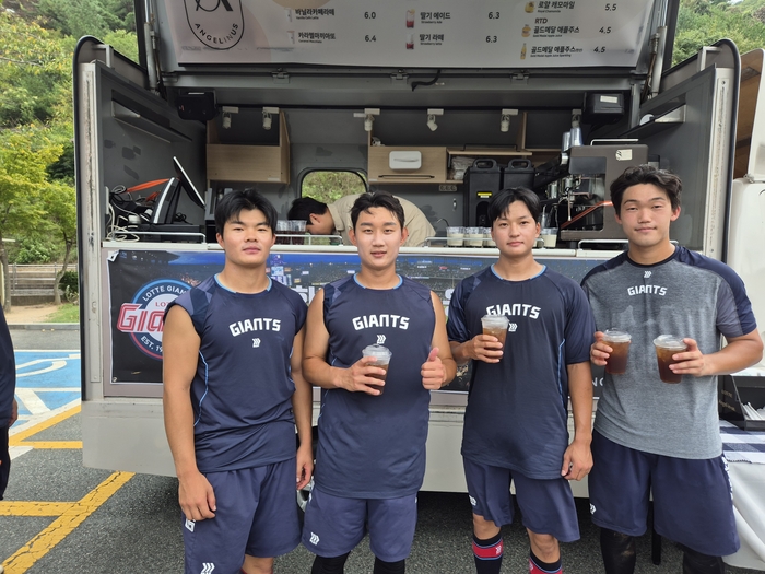 먼저, 지난 8월 24일과 9월 7일에는 롯데GRS의 커피 프랜차이즈 브랜드 ‘엔제리너스’가 상동야구장을 찾아 퓨처스 선수단에게 커피차를 선물했다. 무더운 날씨 속에서도 훈련에 매진하는 선수단과 코칭스태프에게 힘을 보태고자 커피차를 운영, 시원한 음료를 나누며 응원의 메시지를 전했다.