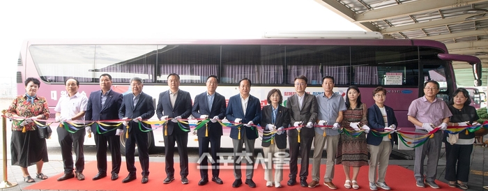 〔스포츠서울│수원=좌승훈기자〕경기 오산시는 15일 오후 시민의 오랜 염원인 오산~잠실·동서울터미널행 시외버스 8135번 개통식을 가졌다.