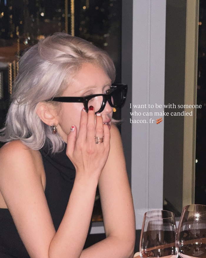 사진 한 장에는 “I want to be with someone who can make candied bacon. fr 🥓(나는 캔디드 베이컨을 만들 수 있는 사람이랑 함께 있고 싶어)”라는 솔직한 멘트가 더해져 웃음을 자아냈다.