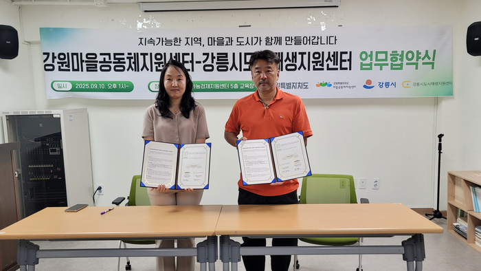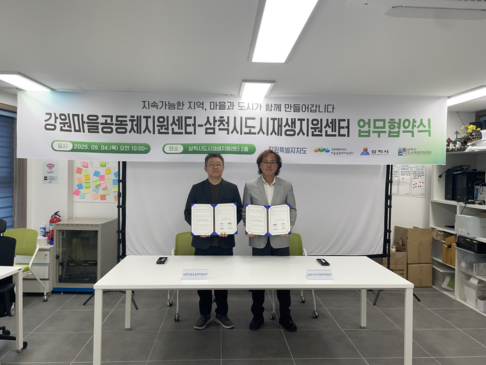 [스포츠서울ㅣ원주=김기원기자]사진|강원특별자치도마을공동체지원센터는 9월 5일 삼척시도시재생지원센터, 9월 9일 강릉시도시재생지원센터와 각각 **업무협약(MOU)**을 체결했다.