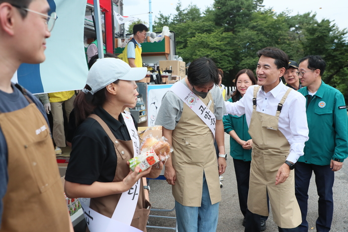 김진태 지사 홍제정수장 방문 강릉 소상공인 간식품 현장종사자들에게 전달