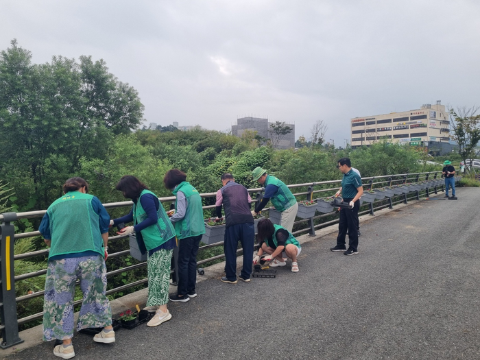 이날 새마을회원 20여 명은 구피아, 메리골드 등 총 800여 본의 꽃을 심었다.