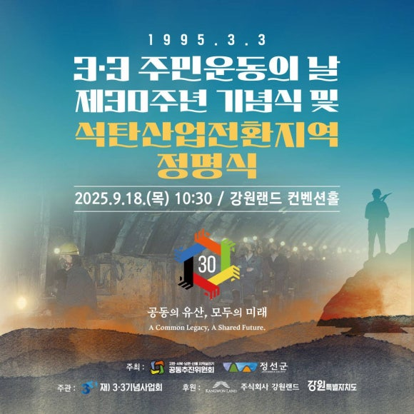 30년 전 정선은 1989년부터 본격화된 정부의 석탄산업 합리화 정책으로 대량 실업과 지역 경제 전반의 심각한 위기를 겪었다. 공영탄광인 함백광업소를 시작으로 수십 개의 크고 작은 탄광이 문을 닫았고, 1995년 대한민국 최대 민영탄광인 동원탄좌의 폐쇄 논의가 시작되면서 당시 정선 고한·사북·남면·신동 주민들은 지역 생존을 위해 자발적으로 나서 대응했으며, 이는 역사적으로 ‘3·3 주민운동’으로 기록됐다.