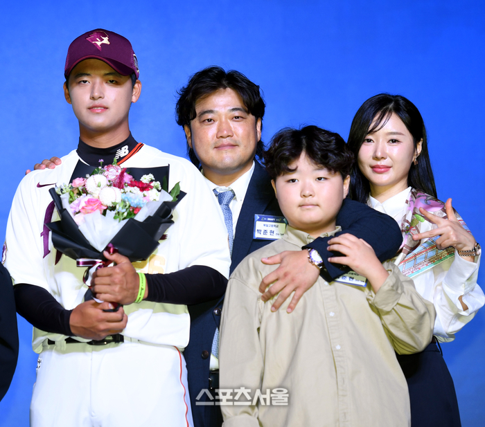 북일고 박준현이 17일 서울 송파구 롯데호텔 월드에서 열린 2026 KBO 리그 신인드래프트에서 키움에 지명된 후 가족들과 기념촬영을 하고 있다.
