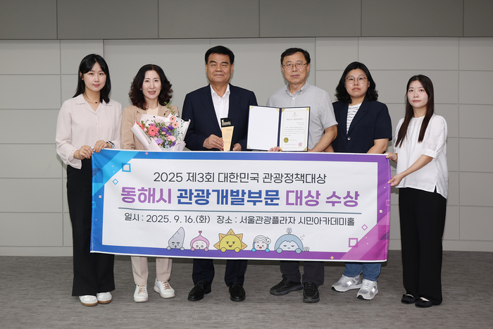 [스포츠서울ㅣ김기원기자]동해시는 지난 7월, 2025 제3회 대한민국 관광정책대상 ‘관광개발부문 대상’에 선정되어 9월 16일 서울관광플라자에서 열린 시상식에 참석했다.