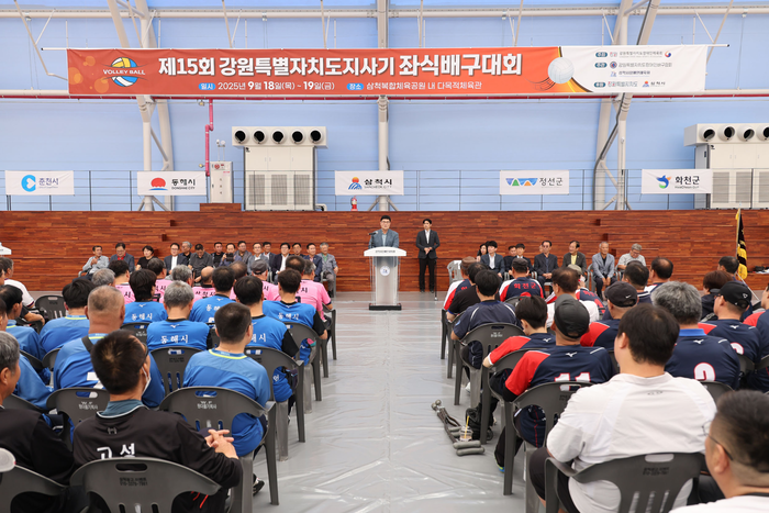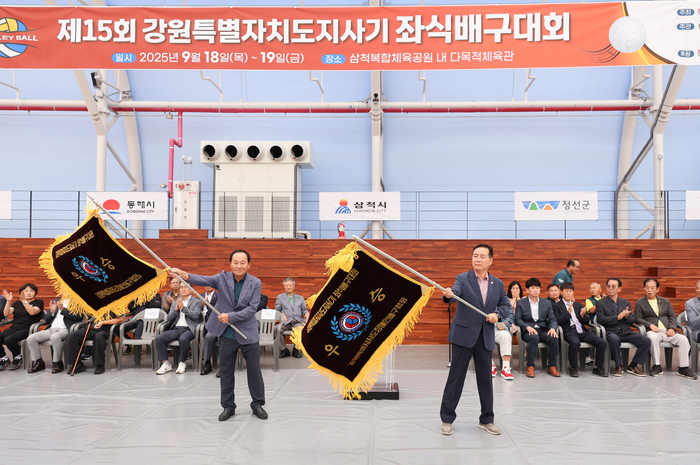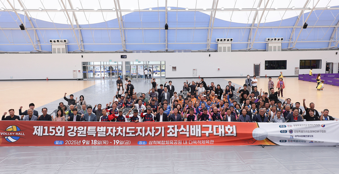[스포츠서울ㅣ김기원기자]18일 강원특별자치도장애인배구협회와 삼척시장애인체육회 주관으로 다목적체육관에서 제15회 강원특별자치도지사기 좌식배구대회 개회식을 갖고 대회는 18~19 양일간 열린다.