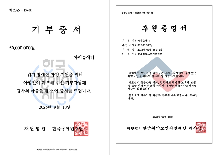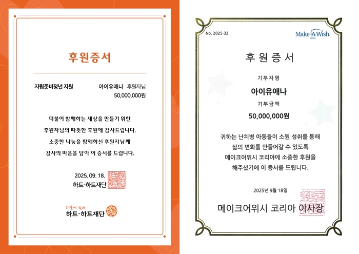 한편, 아이유는 지난 13일과 14일 양일간 팬밋업 ‘2025 IU FAN MEET-UP [Bye, Summer]’을 열고 팬들과 뜻깊은 시간을 보냈다. 특히 앙코르 무대에서 휠체어석 관객들에게 가까이 다가가 노래를 부르고 손을 잡아주는 모습이 화제가 되며 ‘아이유다운 팬사랑’을 다시금 보여줬다.