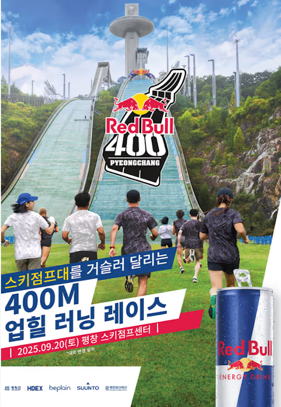 ‘레드불 400’은 2011년 오스트리아에서 처음 시작된 세계적인 익스트림 러닝 대회로, 참가자들이 최대 38도 경사의 스키점프대를 역주행해 건물 40층 높이에 해당하는 결승점에 가장 먼저 도착해야 우승한다. 평창에서는 2019년 국내 최초로 개최된 이후, 올림픽 유산 시설을 활용한 대표적 스포츠 이벤트로 자리매김했으며, 지난해에 이어 올해에도 높은 관심을 끌고 있다.