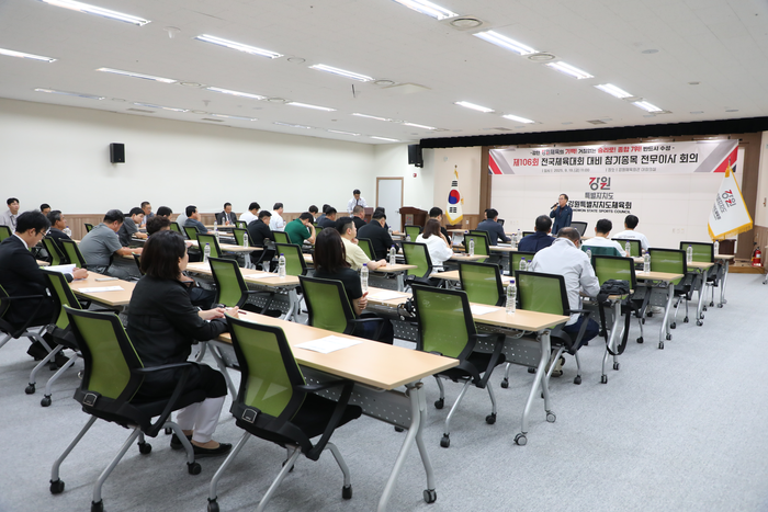 [스포츠서울ㅣ춘천=김기원기자]강원특별자치도체육회(회장 양희구)는 9월 19일(금) 11시에 강원체육회관에서 제106회 전국체육대회 참가종목 전무이사 회의를 개최했다.