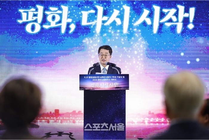 〔스포츠서울│수원=좌승훈기자〕김동연 경기도지사는 19일 파주 캠프그리브스에서 열린 ‘9.19 평양공동선언 7주년 기념식’에서 3대 ‘평화경제전략’을 제시했다.