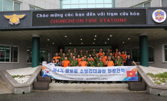 [스포츠서울ㅣ춘천=김기원기자]강원특별자치도 춘천소방서(서장 용석진)는 19일 베트남 달랏시 소방공무원과 하노이 소방대학 관계자 19명, 춘천시청 관계자 2명 등 총 23명이 본서를 방문했다고 밝혔다. 이번 일정은 “제4기 글로벌 소방리더 과정과 소방분야 공공 외교 사업”의 일환으로 진행됐다.