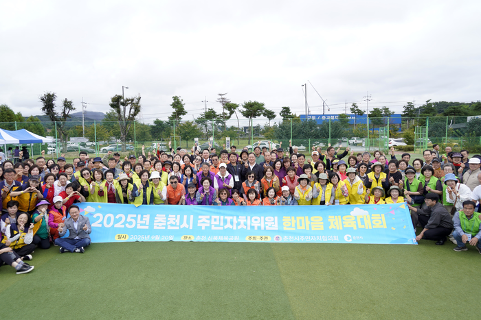 춘천시주민자치협의회(회장 엄상필)가 주최한 ‘2025년 춘천시 주민자치위원 한마음 체육대회’가 20일 신북체육시설에서 성황리에 열렸다. 이날 행사에는 현준태 춘천시 부시장, 김진태 강원특별자치도지사, 신경호 강원특별자치도교육감, 지역 국회의원과 시·도의원을 비롯해 22개 주민자치(위원)회 위원 500여 명이 참석했다.