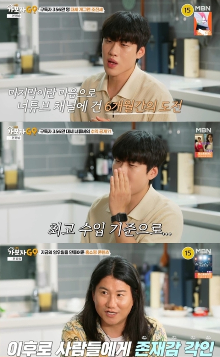 홍현희는 “수입은 1/N 하는가? 최고 많이 가져간 수입은 얼마인가? 국산 차 하나 정도는 되나?” 라고 물었고, 조진세는 “무조건 1/N이다”라며 최고 수익을 공개해 입을 떡 벌어지게 했다. 이어 홍현희는 “부모님이 좋아하셨겠다. 힘들었을 때 그만하라고 안 하셨냐?”라고 묻자, 조진세는 “걱정을 많이 하셨다. 그래도 계속 응원해 주셨다”라고 답했다.