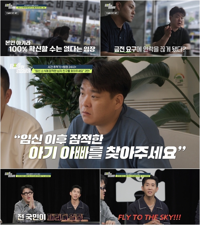 22일(월) 밤 9시 30분 방송되는 채널A ‘탐정들의 영업비밀’ 속 ‘탐정 24시’ 코너에서는 여자친구의 임신 소식에 잠적해버린 남자친구와 전격 맞대면한다. 지난주 등장한 의뢰인은 만삭의 임신부로, 의뢰 당시 출산을 한 달여 앞두고 있었다. 그녀는 “온라인 게임에서 알게 된 남자친구와 2년 반을 교제하며 결혼까지 약속했지만, 임신을 한 후 잠적했다”고 눈물로 호소했다. 설상가상 임신 사실이 부모님께 발각돼, 집에서 쫓겨나 노숙까지 해야 했던 기막힌 사연이 드러났다.