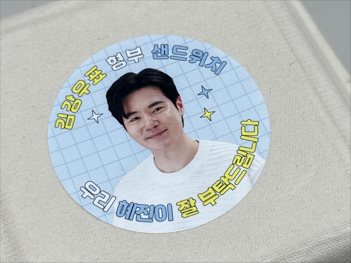 한혜진은 커피차 앞에서 활짝 웃으며 포즈를 취하고, 형부 김강우의 얼굴이 담긴 스티커가 붙은 샌드위치를 들고 인증샷을 남기는 등 기쁨을 감추지 못했다.