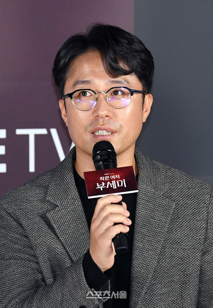 박유영 감독이 22일 서울 영등포구 영등포 CGV에서 열린 지니TV 오리지널 ‘착한 여자 부세미’ 제작발표회에서 취재진의 질문에 답을 하고 있다.