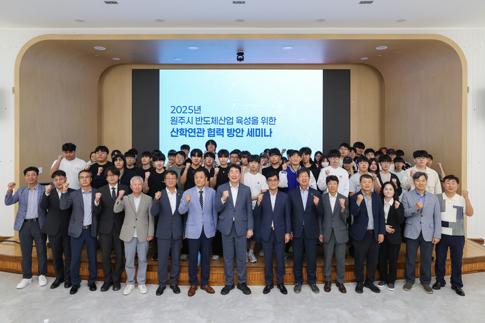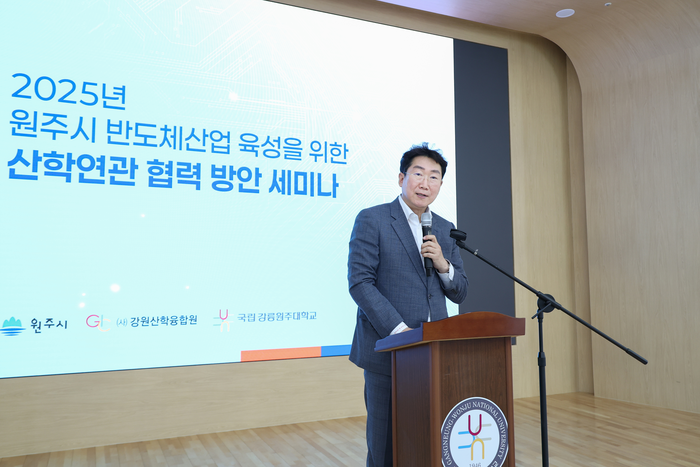 [스포츠서울ㅣ원주=김기원기자]원주시는 22일 오후 2시, 강릉원주대학교에서 반도체산업 생태계 조성과 방안을 모색하는 ‘원주시 반도체산업 육성을 위한 산학연관 협력 방안 세미나’를 개최했다.