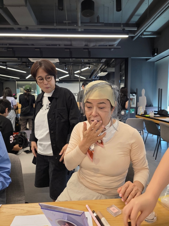 사진 옆에 함께 포착된 송은이의 표정 또한 흥미롭다. 조혜련의 분장을 진지하게 지켜보던 송은이는 놀라움과 만족감이 뒤섞인 표정을 짓고 있다.