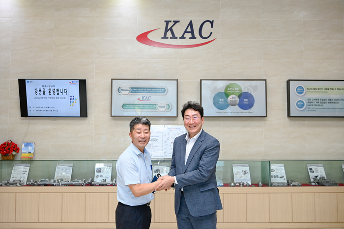 원강수 원주시장은 이날 케이에이씨의 생산시설을 직접 둘러보며 제품의 제조 과정과 품질관리 현황을 꼼꼼히 살폈다. 또한 임직원들과 간담회에서 현장의 애로사항을 적극적으로 청취했다.
