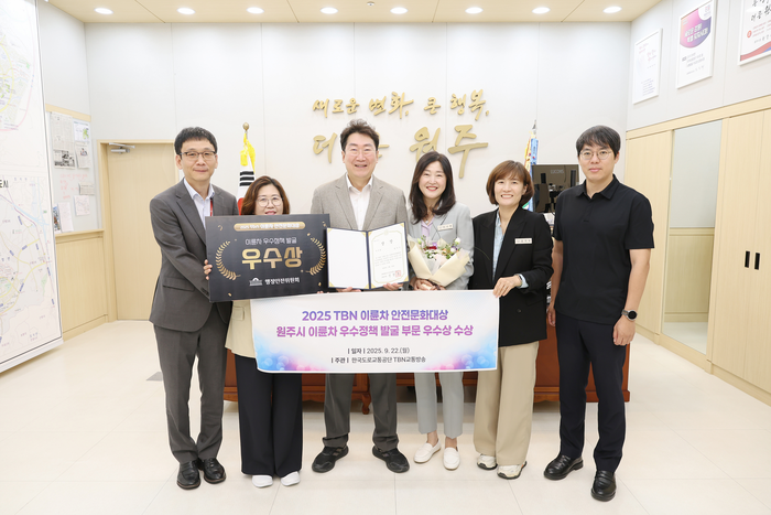 [스포츠서울ㅣ원주=김기원기자]원주시는 지난 22일 서울 영등포구 국회박물관에서 열린 ‘2025 tbn 이륜차 안전문화대상’에서 우수정책 발굴 부문 ‘우수상’을 수상하는 영예를 안았다.