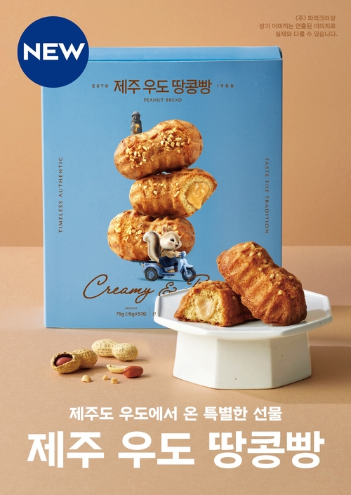 ‘제주 우도 땅콩빵’은 제주도 우도의 햇살과 바람이 키운 귀한 땅콩을 사용한 구움과자로, 오동통한 모양에 부드럽고 고소한 우도 땅콩크림을 넣었다.