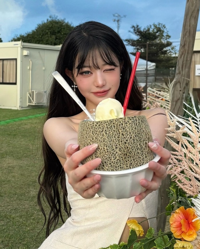 공개된 사진 속 장원영은 밝은 미소와 함께 멜론 아이스크림을 들고 카메라를 응시하고 있다. 맑은 하늘과 푸른 자연을 배경으로 장원영 특유의 사랑스러운 비주얼이 돋보인다. 특히, 화사한 메이크업과 자연스러운 포즈는 장원영 특유의 밝고 상큼한 매력을 충분히 뽐냈다.