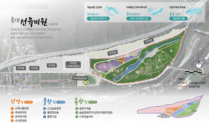 ㅁ또한 매년 가을꽃 축제가 열리는 북면 용대리에서는 15㏊규모의 지방정원 조성사업이 진행 중이다. 올해는 1차 사업으로 20억 원을 투입해 수변정비 및 관로설치를 마무리하고, 2027년 춘천~속초 동서고속화철도 개통에 맞춰 마을 전체를 정원으로 꾸며 사계절 정원도시로 완성할 계획이다.