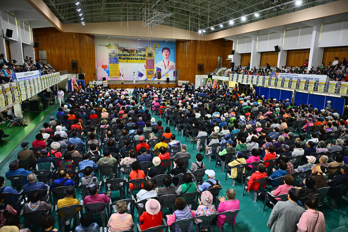 기념식 열고 어르신 800여 명 초청…쌀과 생필품 전달하며 나눔 실천