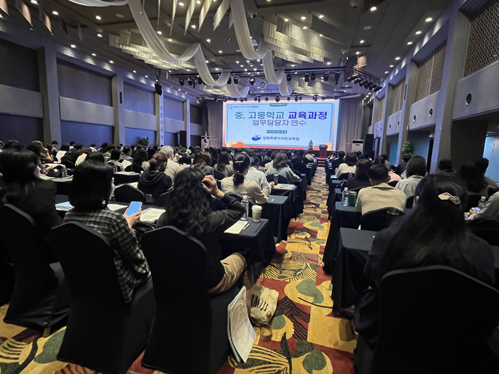 모나 용평 드래곤밸리호텔 그랜드볼룸에서 진행된 이번 연수에는 중·고등학교 교육과정 업무 담당자와 교육지원청 담당 장학사 등 280여 명이 참석했다. 오전에는 ‘2022 개정 교육과정과 수업, 평가의 방향’을 주제로 공통 강의가 진행되었다.