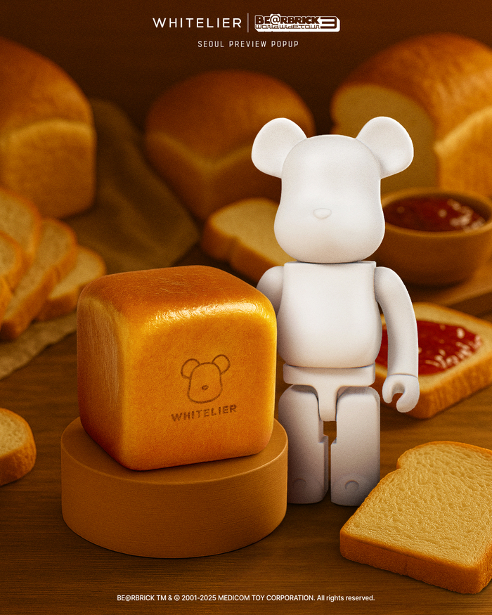 이번 팝업에는 다채로운 프로그램을 준비했다. 생식빵 브랜드 ‘화이트리에(Whitelier)’와의 이색 콜라보레이션, 한정 세트 및 단독 굿즈 판매,럭키드로우 이벤트, 전시 티켓 및 굿즈 할인권 제공, 현장 한정 시크릿 쿠폰 증정 등 풍성한 즐길거리가 마련된다. 특히 화이트리에와의 협업은 BE@RBRICK의 예술성과 브랜드 감각을 푸드 컬처와 접목한 시도로, 고급스러운 감각을 더한다.