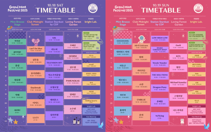 [스포츠서울 | 이승록 기자] 매년 음악 팬들의 큰 사랑을 받아온 가을 대표 음악 축제 ‘그랜드 민트 페스티벌 2025(Grand Mint Festival 2025, 이하 GMF)’가 최종 타임테이블과 각 일자별, 스테이지별 헤드라이너를 공개했다.