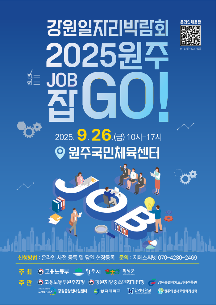 * 강원일자리박람회 원주 잡(JOB) GO!(9.26/10:00~17:00/원주국민체육센터)