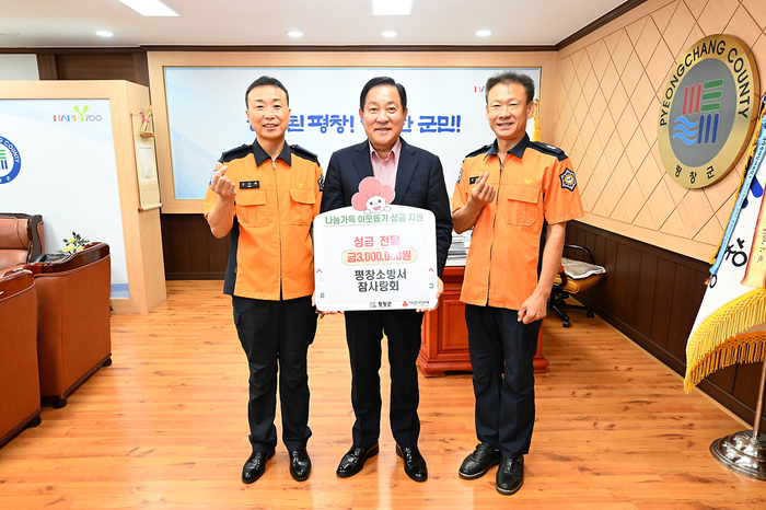 [스포츠서울ㅣ김기원기자]평창군은 9월 26일 평창소방서 참사랑회가 추석 명절을 맞아 지역 내 어려운 이웃을 돕기 위해 성금 300만 원을 기탁했다고 밝혔다.