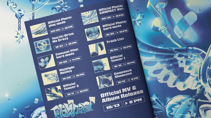 스케줄러에 따르면 TWS는 오는 29일과 30일 각각 ‘play mode’, 컴팩트 버전의 오피셜 포토를 공개하며 신보의 콘셉트를 알린다. 10월 1일에는 ‘You(th) Drive Me Crazy’라는 이름의 콘텐츠가 예고돼 궁금증을 자아낸다. 2일 ‘hard mode’의 오피셜 포토와 콘셉트 필름까지 총 세 가지 버전을 쏟아내며 청춘 TWS의 다양한 얼굴을 선보일 예정이다.