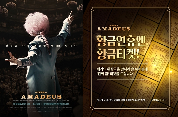 제작사 라이브러리컴퍼니 관계자는 “오리지널 티켓을 비롯해 작품을 소장하려는 관객들의 수요가 꾸준히 커지고 있다. 이번 황금 티켓 이벤트는 공연의 감동을 넘어, 금테크 시대에 맞춰 관객들에게 특별한 경험을 드리고자 마련했다”라며 “무엇보다 소중한 황금 연휴에 극장을 찾아주시는 관객분들께 작은 보답이자 특별한 추억이 되기를 바란다. 연극 ‘아마데우스’가 예술적 감동과 함께 오래 기억될 시간을 선물할 것”이라고 말했다.