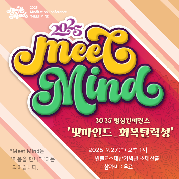 [스포츠서울 | 이수진 기자] 명상 컨퍼런스 ‘밋마인드’(Meet Mind)가 오는 27일 서울시 동작구 소재 원불교 소태산기념관에서 열린다.
